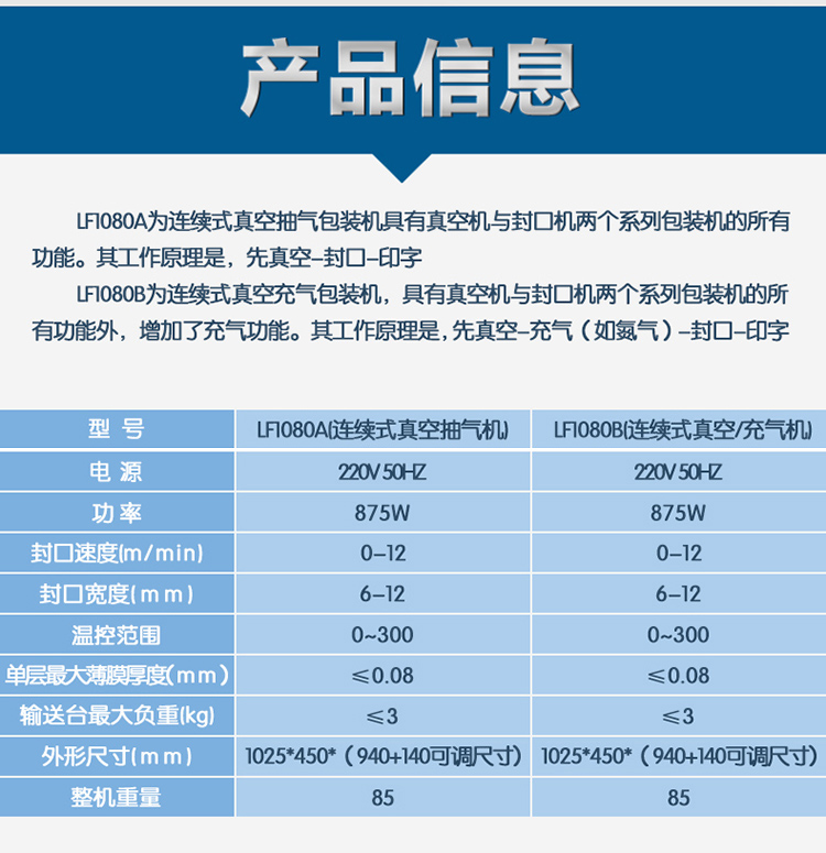 【LF1080连续式真空抽气/充气封口机】详细信息