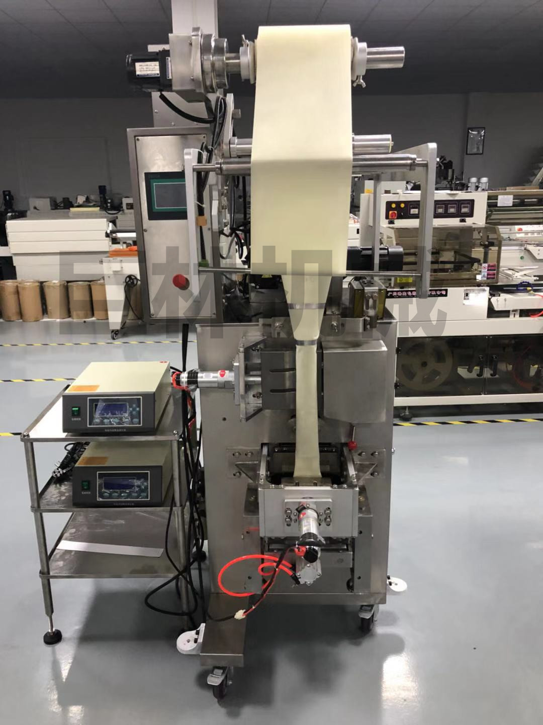 2、智能光电控制装置,确保包装制袋图案完整,拉袋采用驱动步进电机控制及色标定位,性能稳定、调节方便、检测准确。